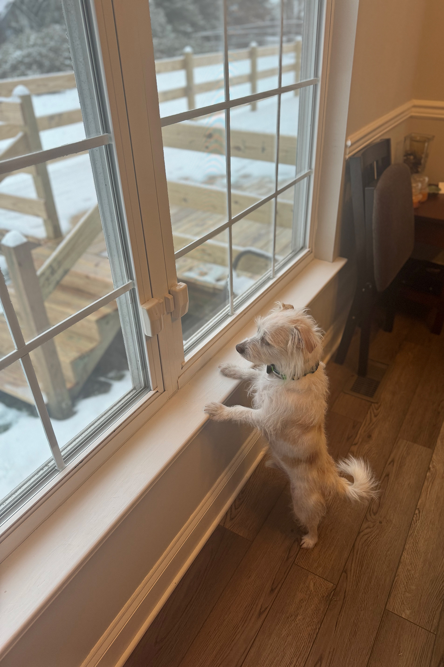 This is the 3rd winter I had since I moved to Delaware from North Carolina and met Mommy and Daddy. In those 3 winters, I got to see so much snow!! From my first year with Mommy and Daddy, Mommy got me all ready for winter! It all started with these things called snow boots. I worked really hard to practice walking in these boots. Take a look~😎