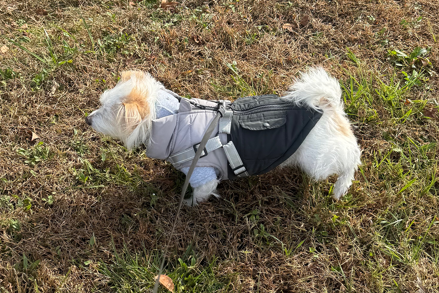 Then she got me another one with a harness on. I love both, but I like wearing this one with a harness because it’s gray like Mommy’s vest! 😉